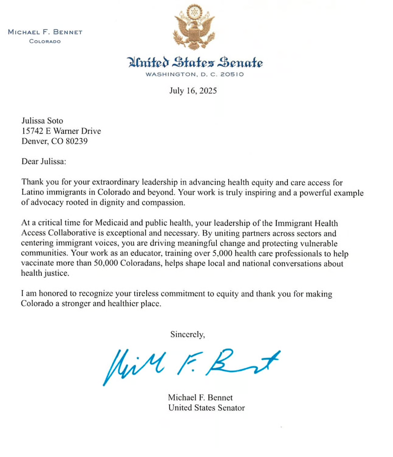 For extraordinary leadership in advancing health equity and care access for Latino immigrants in Colorado and beyond.